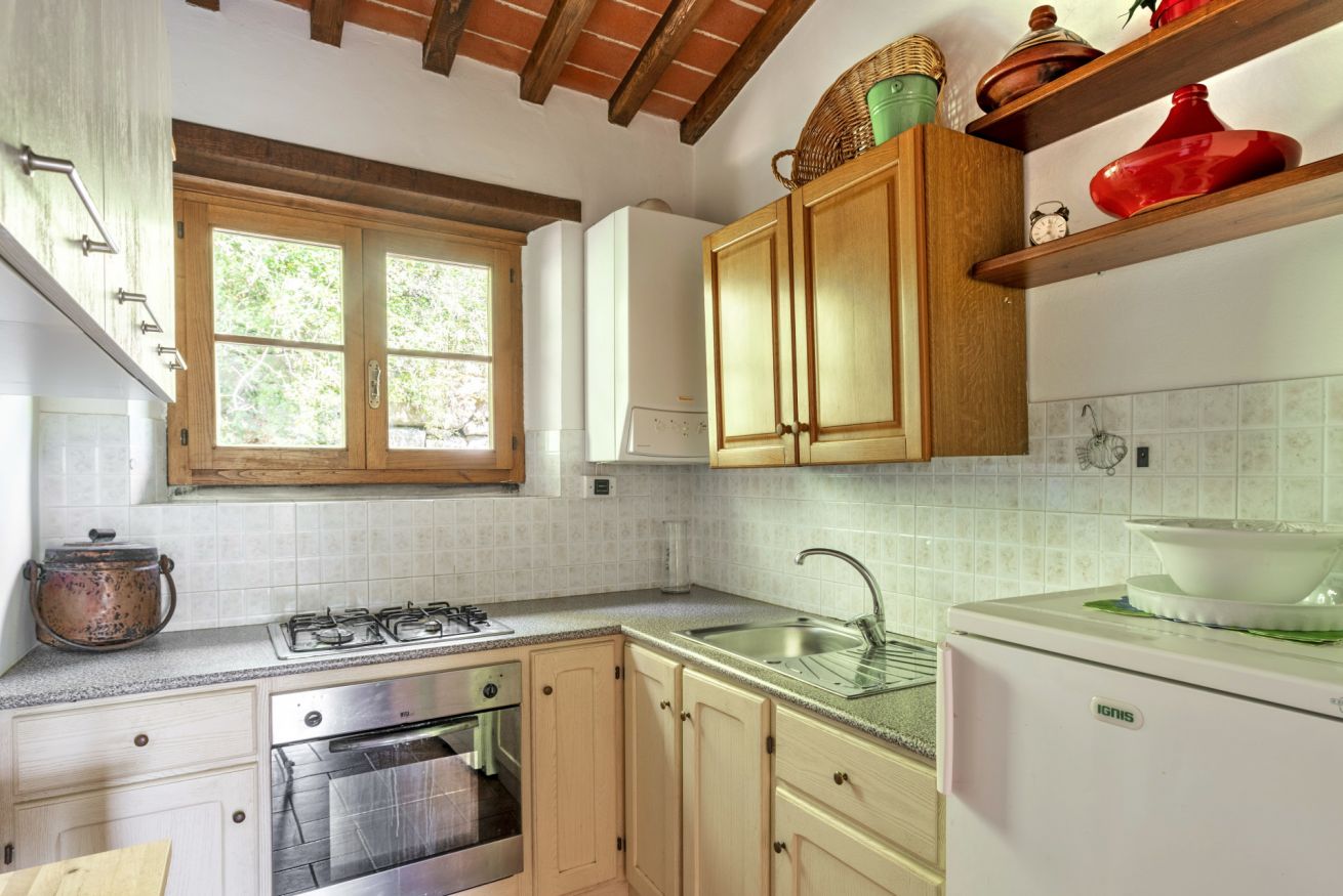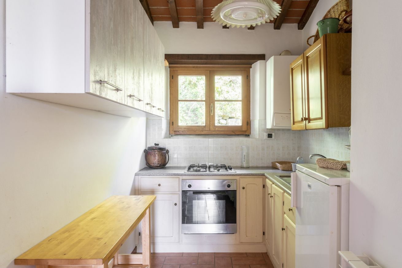 Appartamento Il Castagno dotato di ingresso indipendente, piccolo spazio al esterno con tavolino e sedie. Alloggio è composto da una camera matrimoniale con il letto singolo, zona soggiorno con divano letto da una piazza e mezza, cucina e bagno privato.